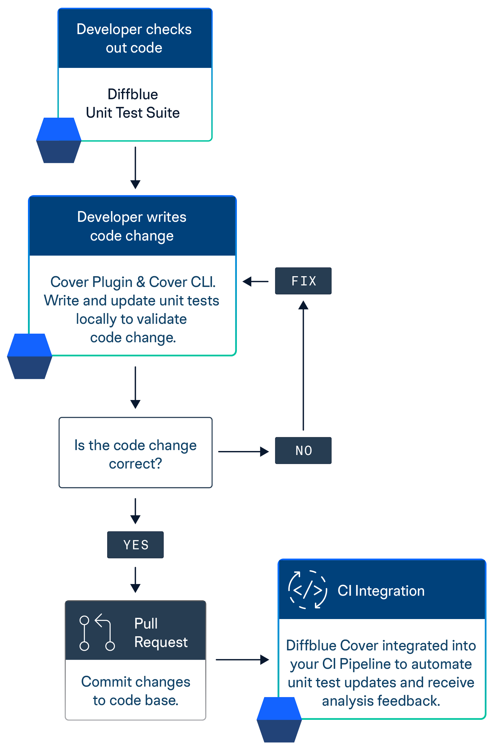 Diffblue Cover is also provided as an IDE plugin tool so you can write tests with one click in the IntelliJ IDE (see [get-started-cover-plugin](https://cover-docs.diffblue.com/get-started/get-started/get-started-cover-plugin "mention")), and can also be integrated into your CI pipeline to automatically write tests within your CI workflow (see [get-started-cover-pipeline](https://cover-docs.diffblue.com/get-started/get-started/get-started-cover-pipeline "mention")).